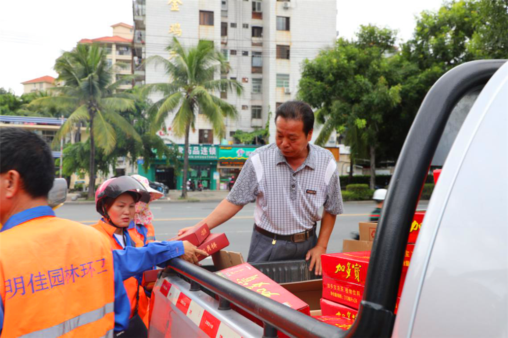 (吉陽區(qū)梁茂松主管向員工發(fā)放慰問品)